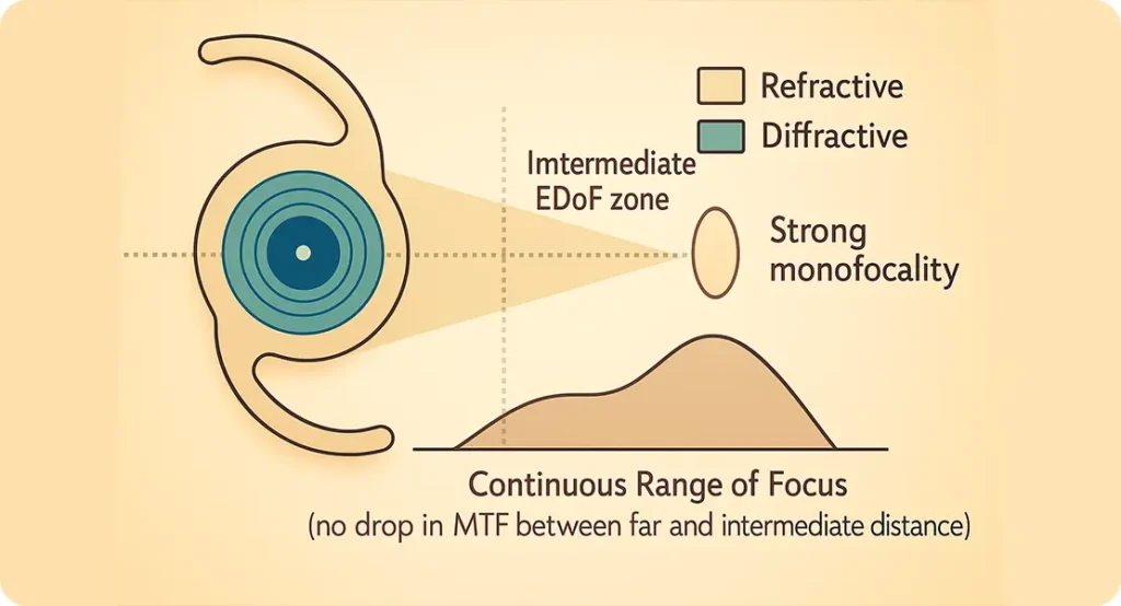 Each manufacturer has its own way of creating this extended range. Some use diffractive technology, others rely on wavefront shaping. The end result is similar in concept but can feel very different in practice, which is why knowing the details of each design matters when you’re deciding.
